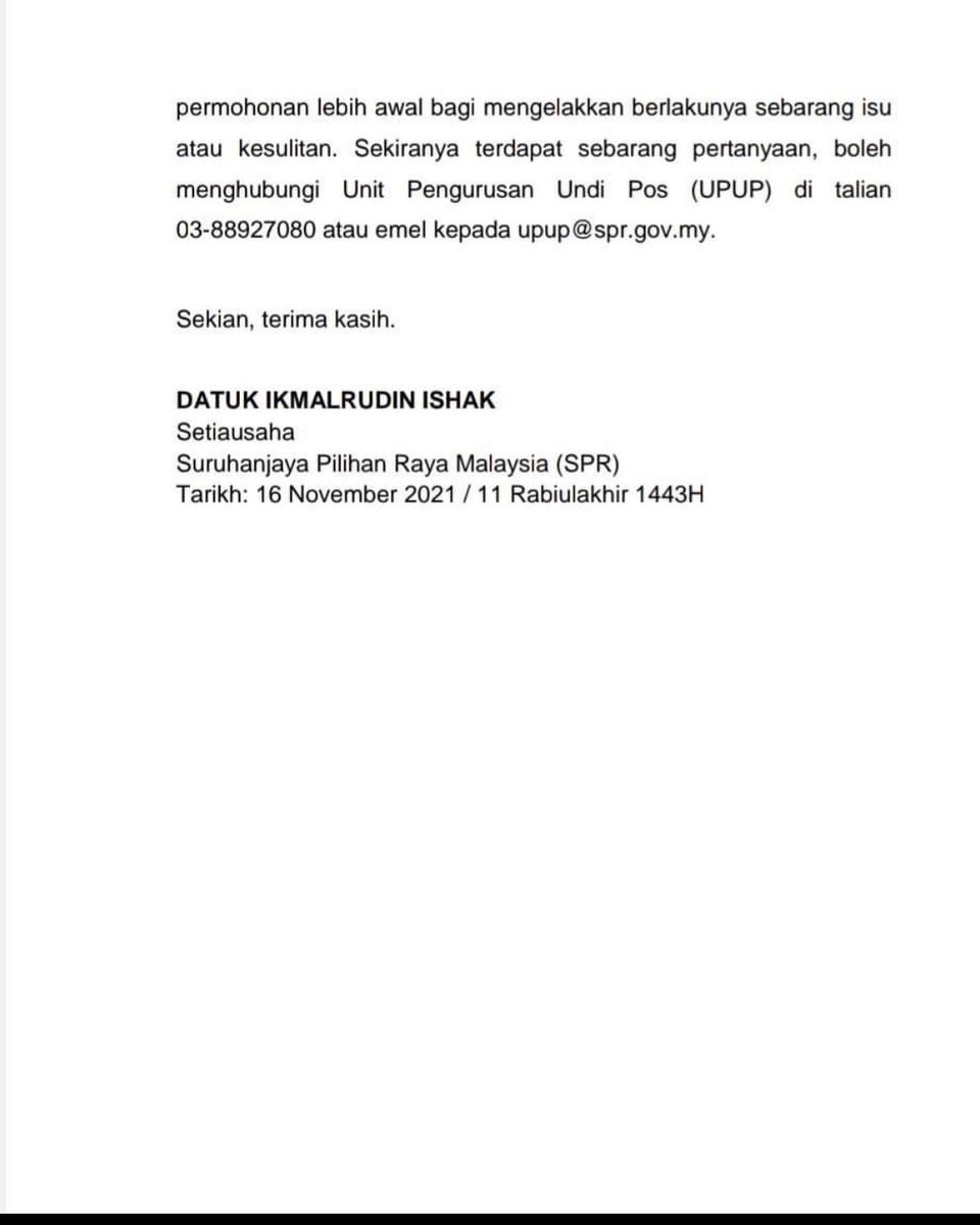 Y ang Benar. Surat dari Yang Dipertua. Sekiranya terdapat sebarang pertanyaan berkenaan perkara ini sila hubungi Dr.